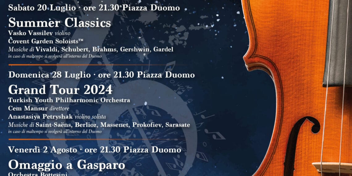 Another unmissable appointment is scheduled for Sunday, July 28th, also at 9:30 PM and again in Piazza Duomo. The Turkish Youth Philharmonic Orchestra will take center stage with the concert “Grand Tour 2024”. The violin of Anastasiya Petryshak and the orchestral direction of Cem Mansur promise an evening full of musical emotions.