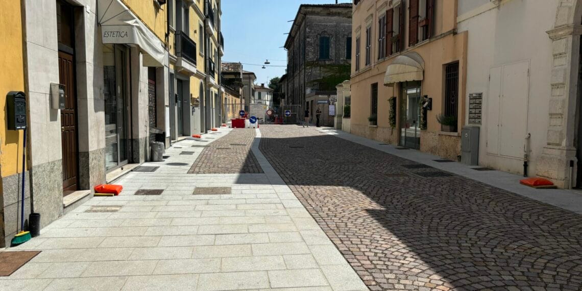 Nearly a year after the start of the works, officially initiated on August 7, 2023, with Local Police Ordinance No. 180, the redevelopment works have been partially completed. The underground utilities network has been redone and the porphyry pavement has been laid, allowing both vehicular and pedestrian access up to the intersection with Via Zambelli.