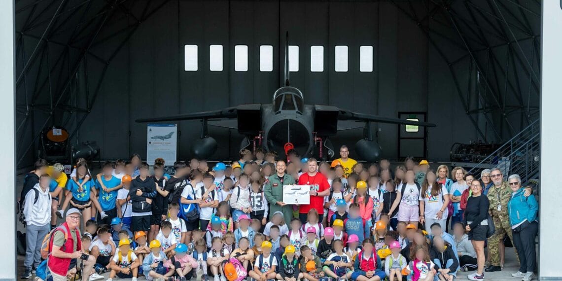 On Wednesday, July 3rd, the young attendees of the Summer Recreation Center of the Oratory “Beato Alberto” in Villa d’Ogna, in the province of Bergamo, had the opportunity to visit the 6th Wing of the Italian Air Force in Ghedi. They were welcomed at the airport by the Commander of the “Red Devils,” Colonel Luca Giuseppe Vitaliti.