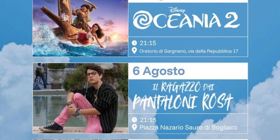 The series will kick off on Tuesday, July 2, with the screening of the Disney animated film “Moana 2.” The event is scheduled for 9:15 PM at the Oratory of Gargnano, located at Via della Repubblica 17.